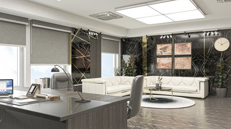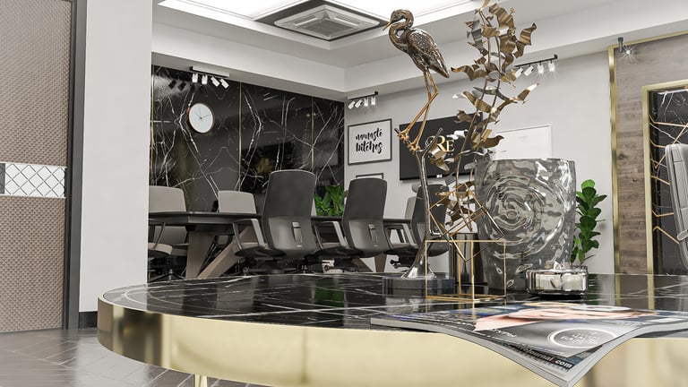 Elevate this workspace with our luxurious office interior design solution. Opulent materials, rich textures, and bespoke furnishings converge to create an environment of sophistication and comfort. Experience a workspace that inspires productivity and reflects your commitment to excellence.